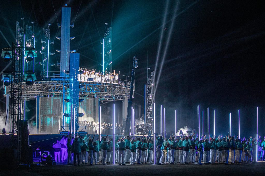 Este espectáculo sin precedentes, retransmitido mundialmente a una audiencia verdaderamente internacional, contó con impresionantes efectos visuales, como un espectacular show de drones, constelaciones de láser, pantallas LED, avatares y mares de luz, todo ello combinado con bellas bandas sonoras, actuaciones musicales y sinfonías envolventes, que llevaron a los espectadores a un viaje emocional y cautivaron al público de todo el mundo.