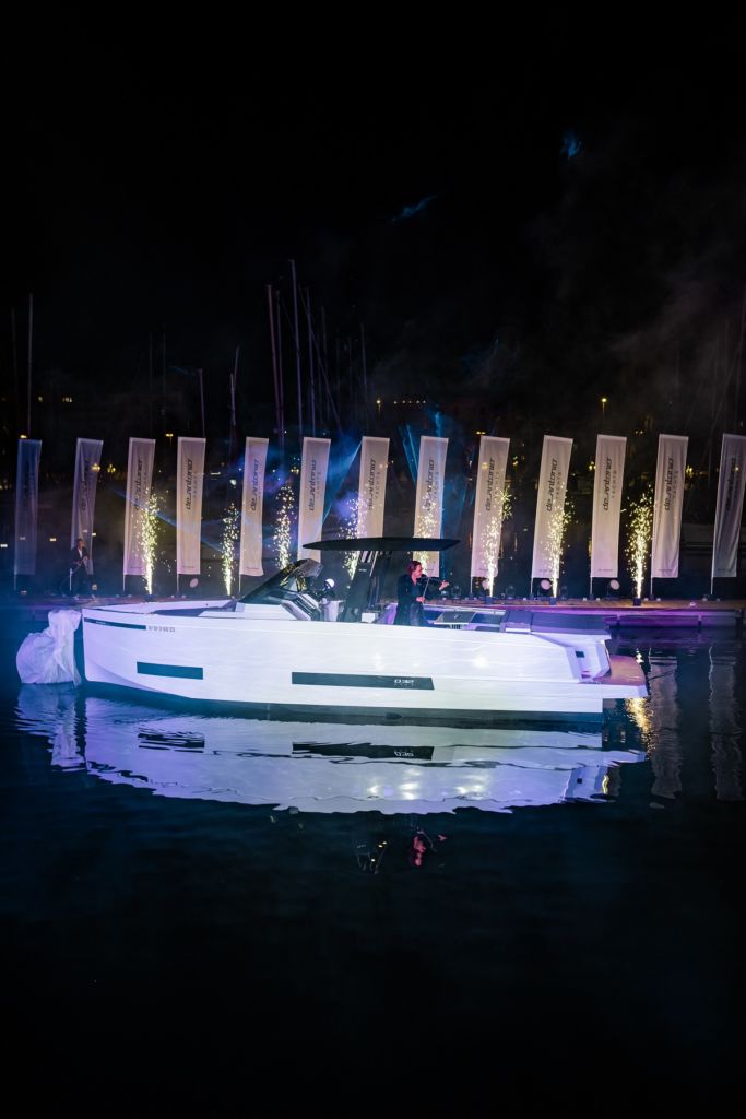 De Antonio Yachts ha sorprendido de nuevo, realizando una espectacular puesta en escena durante la presentación del nuevo D32 Open. Dentro del entorno del emblemático club náutico y con Barcelona como telón de fondo e hilo conductor de la gala, se ha realizado una cena para presentar en exclusiva a su red de distribución el nuevo modelo. De la mano de Marc de Antonio y Stan Chmielewski, fundadores y alma mater de De Antonio Yachts se descubrió el modelo en el momento álgido de la noche con un impresionante “unveiling” acompañado de un espectáculo pirotécnico y luces con música en directo.