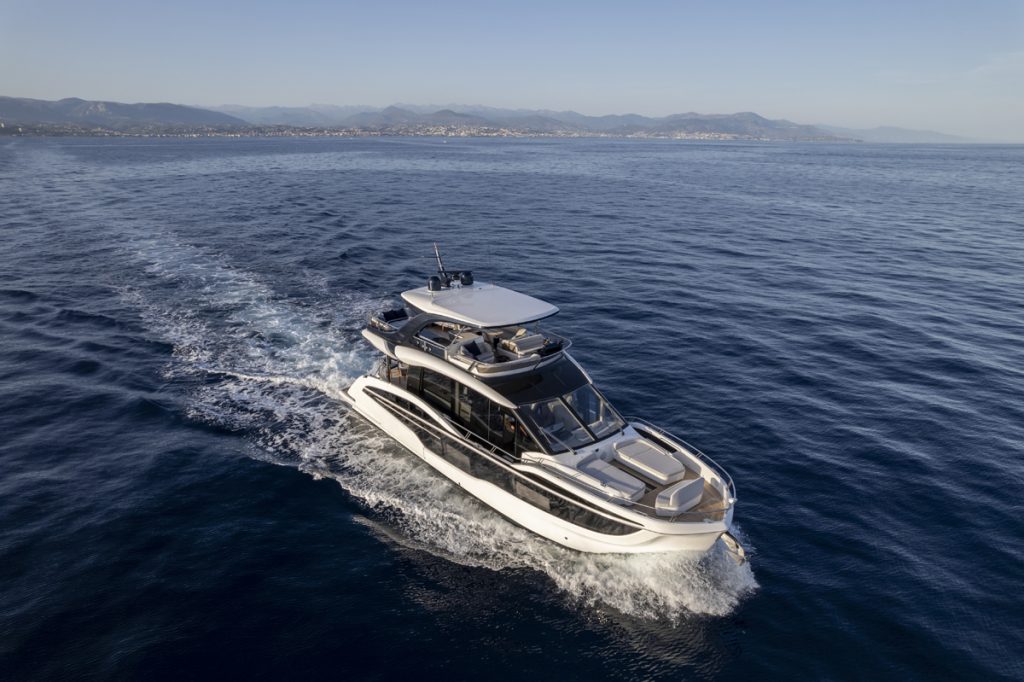 El Galeon 620 Fly combina una velocidad máxima de 31 nudos con un estilo interior propio de los astilleros de superyates mediterráneos. El yate incorpora el famoso modo playa de Galeon, donde las alas desplegables amplían el espacio de entretenimiento en la cubierta de popa. Pero también introduce un nuevo “modo terraza”, donde dos balcones plegables adicionales ofrecen una terraza privada para el camarote del propietario y una plataforma de embarque lateral exclusiva.