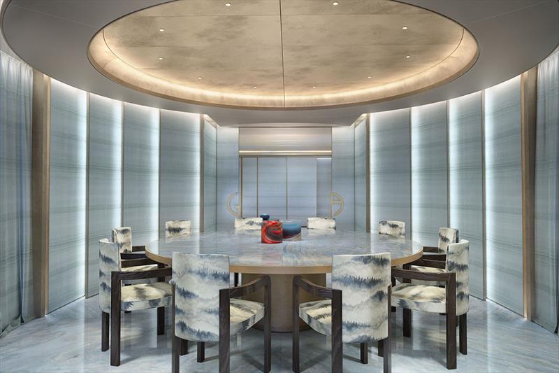 El proyecto, cuyos interiores de Armani/Casa estuvieron a cargo de Giorgio Armani y su equipo en colaboración con el Admiral Style Center, interpreta y fusiona el ADN de las dos marcas para crear un superyate único cuyo interior es el resultado del encuentro entre la excelencia del mundo náutico y el de la moda y el diseño.