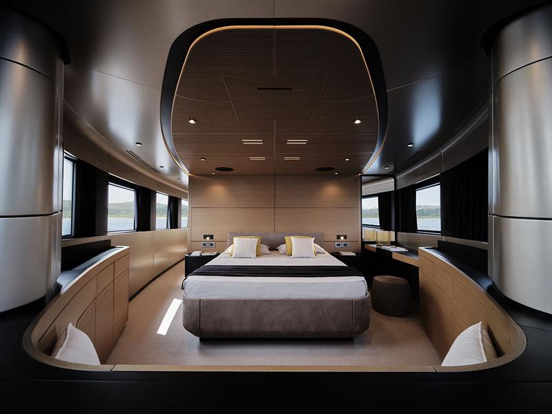 El alojamiento adicional se encuentra en la cubierta inferior, que puede configurarse en 1 camarote VIP + 1 camarote doble y 1 camarote para invitados o en un diseño de 2 camarotes VIP, con todos los camarotes beneficiándose de los efectos luminosos de sus enormes ventanales. que crean una sensación aireada y moderna a bordo.