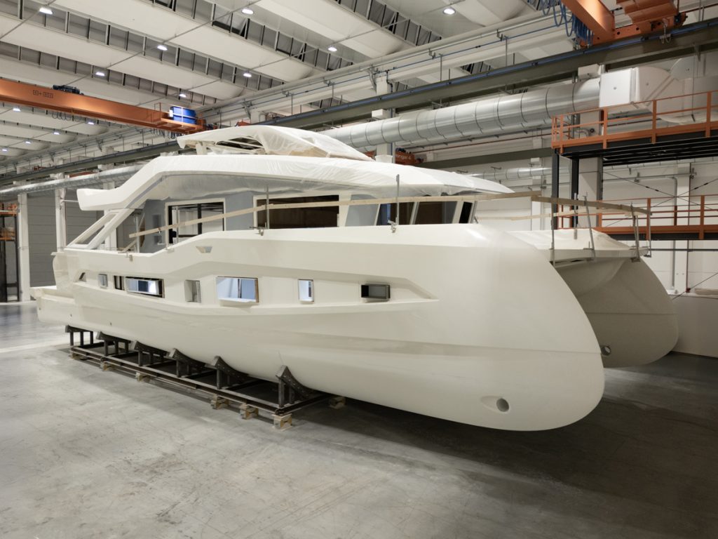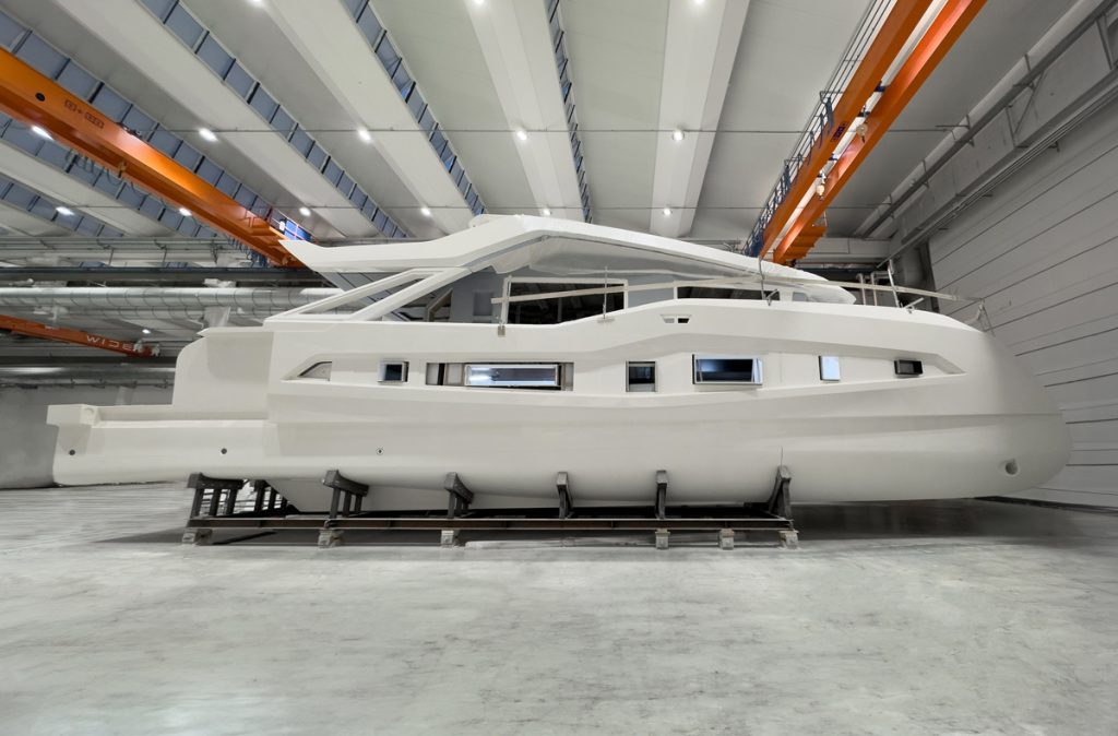 El astillero Wider continúa ampliando los límites del diseño de yates con el nuevo WiderCat 76 en construcción en su centro de vanguardia Wider Vision Hub en Fano, Italia.