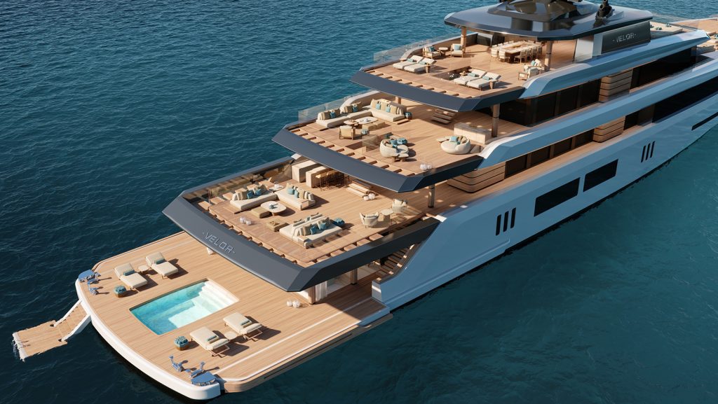 Cuidadosamente diseñado para ofrecer la comodidad y la funcionalidad de un barco de cinco cubiertas en tan solo cuatro, el Velor 75m reimagina la arquitectura de la vida en el mar, presentando soluciones elegantes, eficientes y visualmente impactantes que desafían el diseño tradicional de superyates.